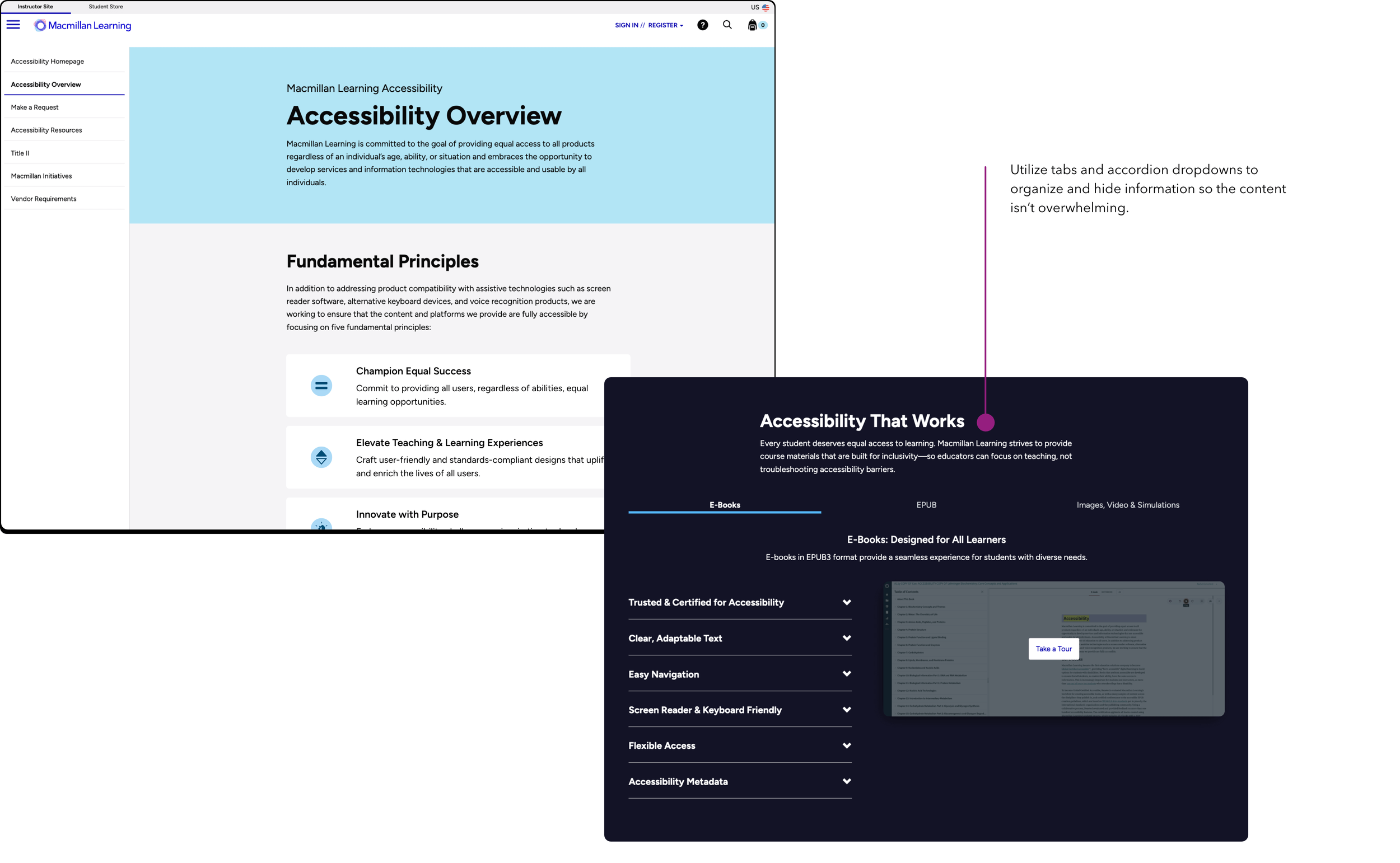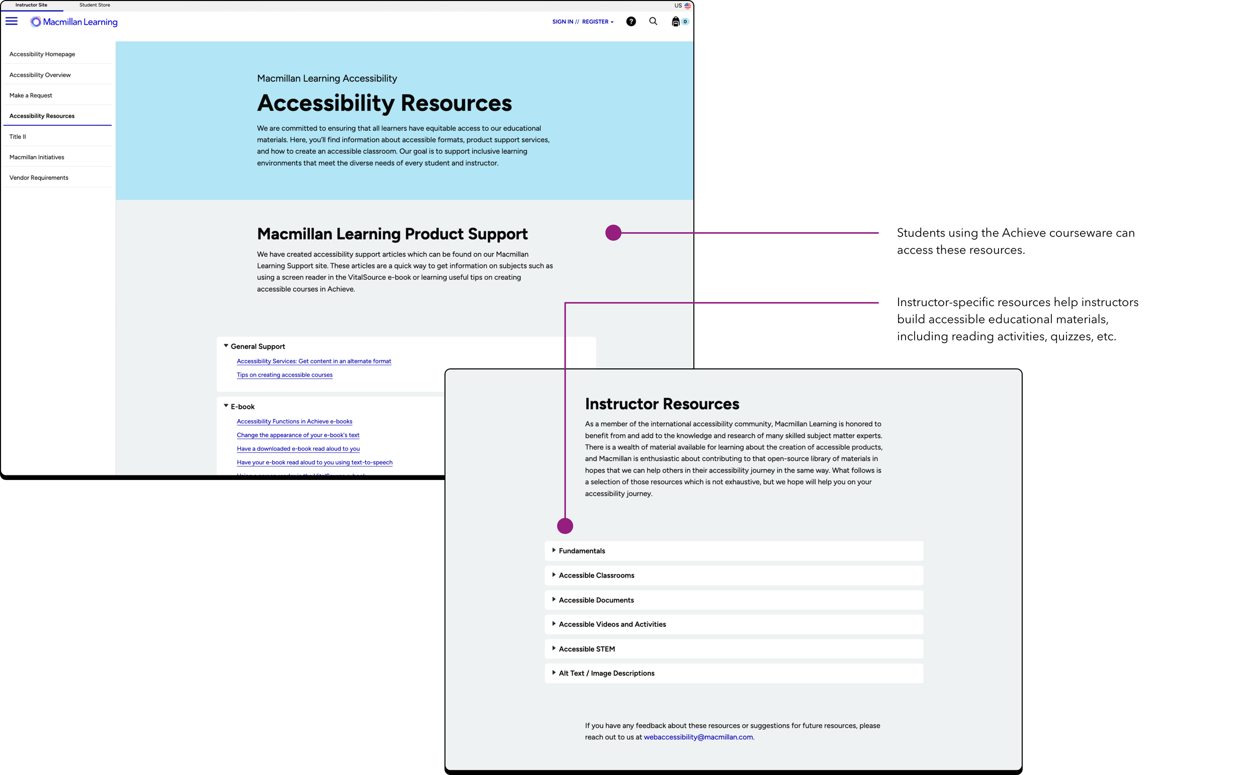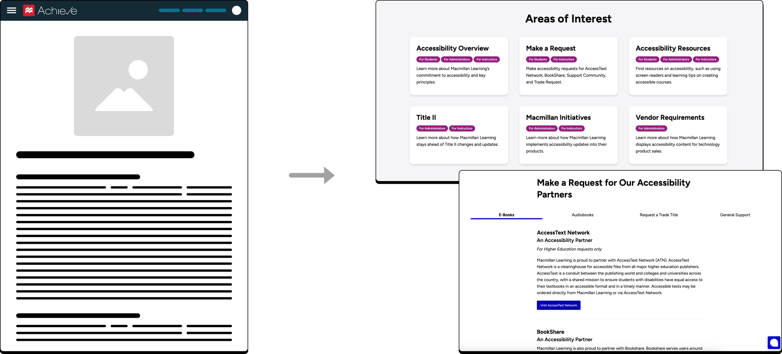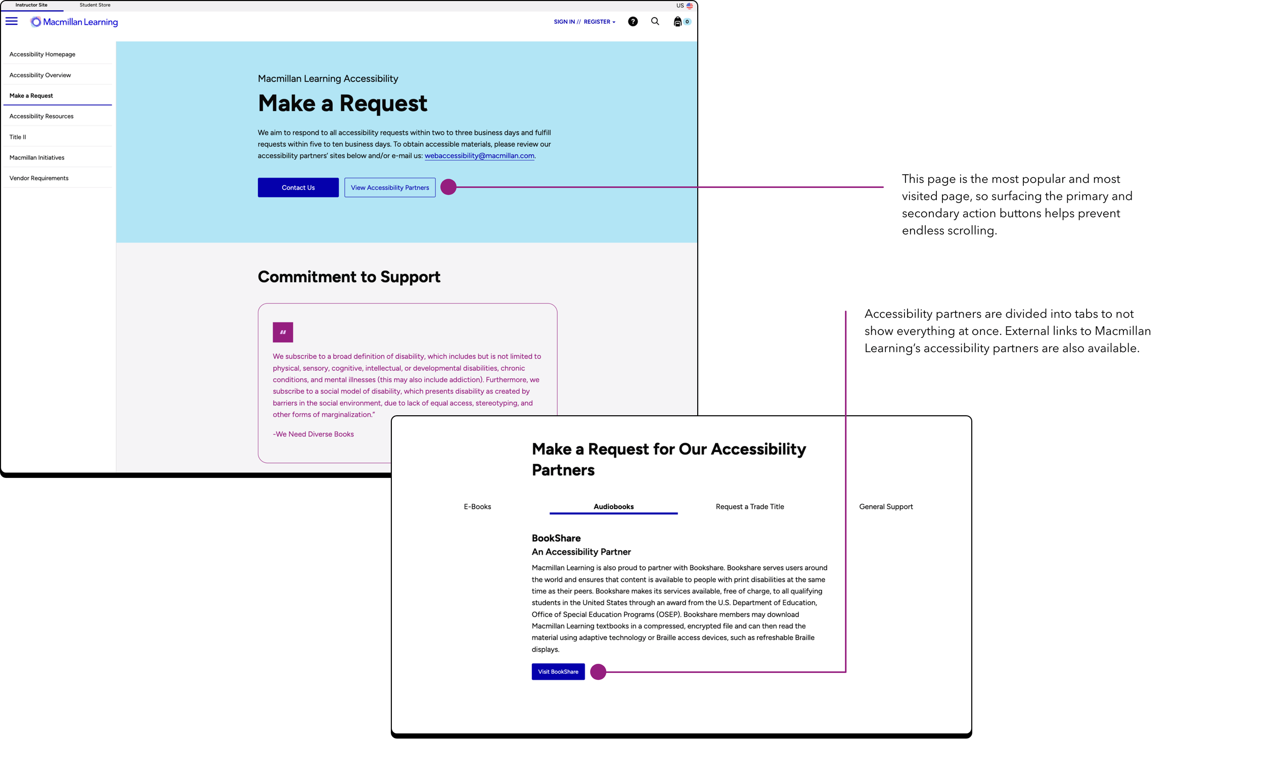 A redesign to Macmillan Learning’s accessibility page on their marketing website to improve site navigation and ensure an inclusive user experience.