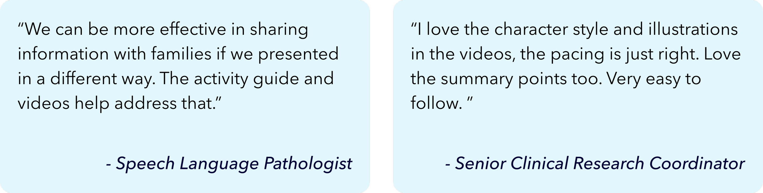 Uploaded the two videos on Cincinnati Children’s YouTube for family reference and dispensed the guide book in clinical studies